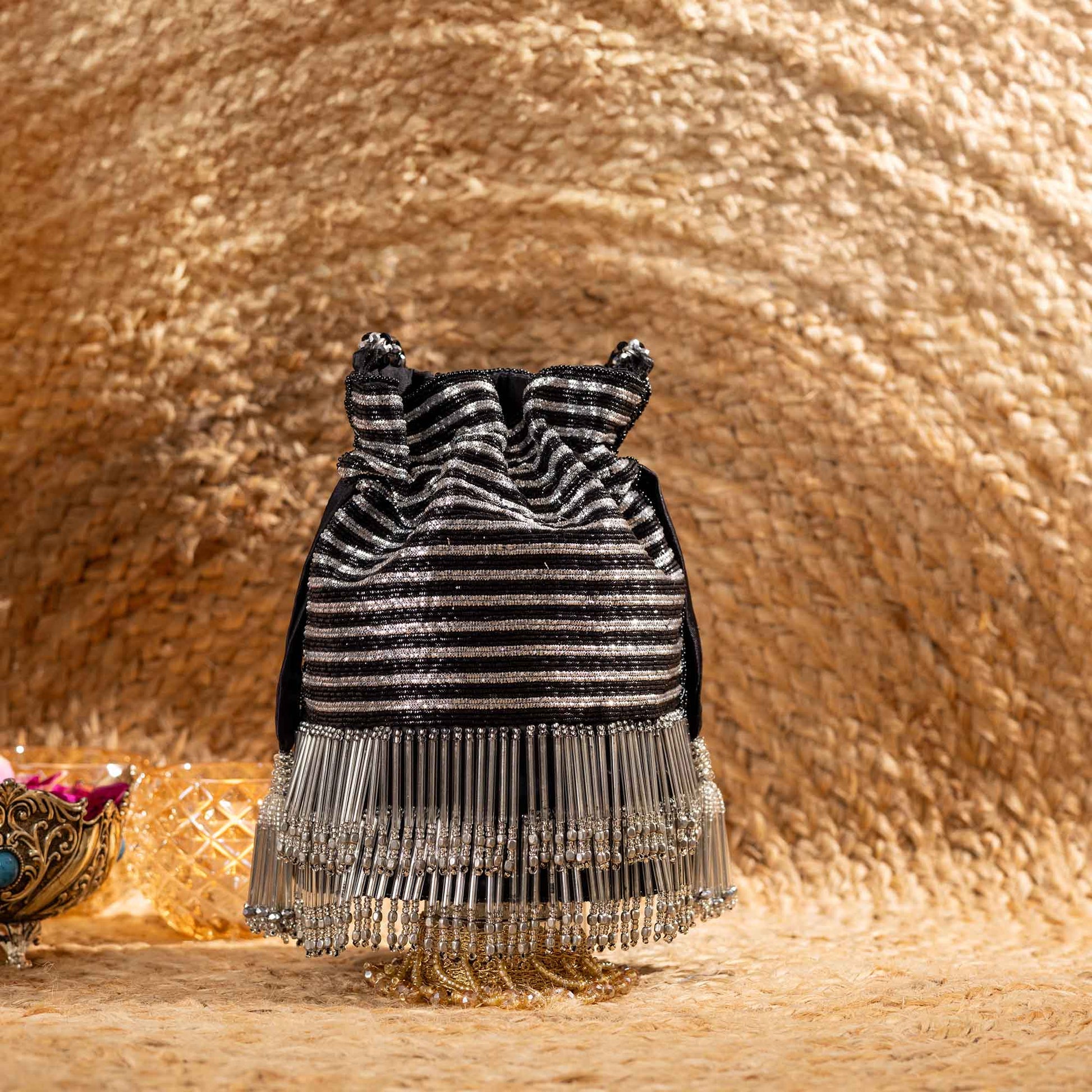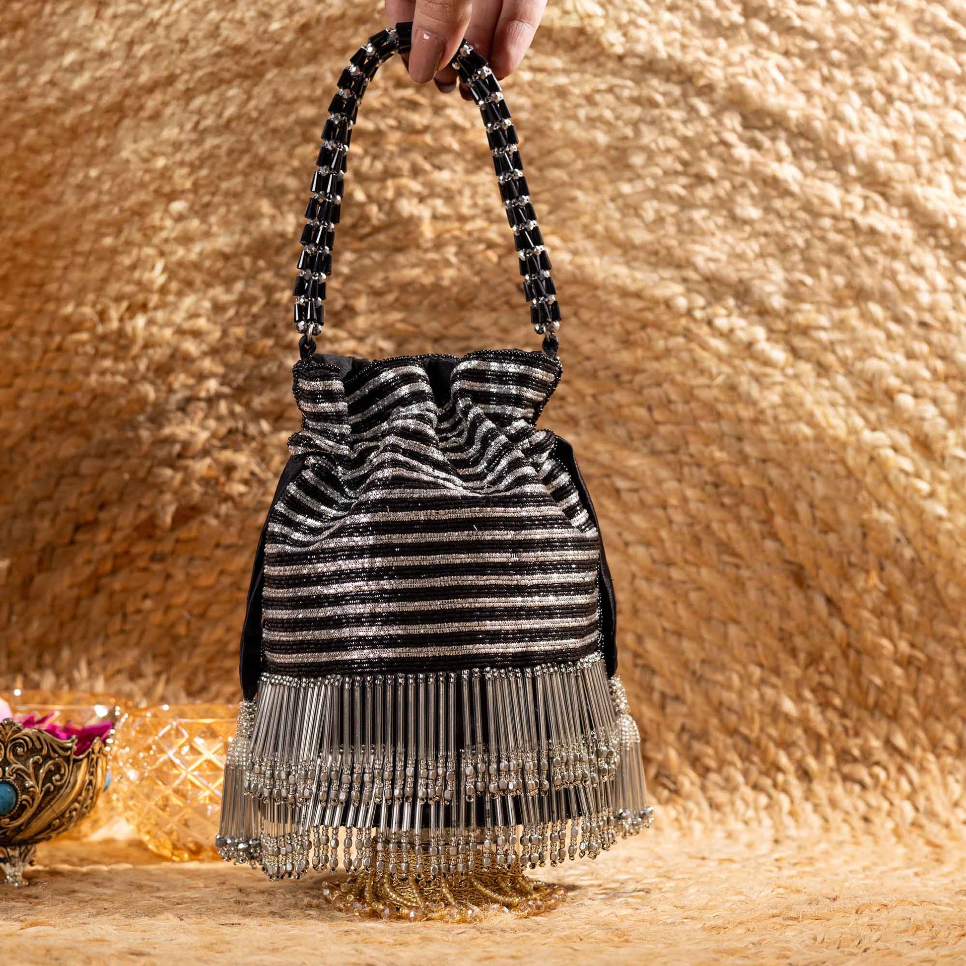 Elevate your festive style with SAANISH bucket potlis — where modern design meets timeless tradition. With their structured silhouette, roomy interiors, and hand-embellished detailing, these potlis strike the perfect balance between statement and sophistication. A must-have for weddings, soirées, and celebrations, they let you carry your essentials with grace and glamour.