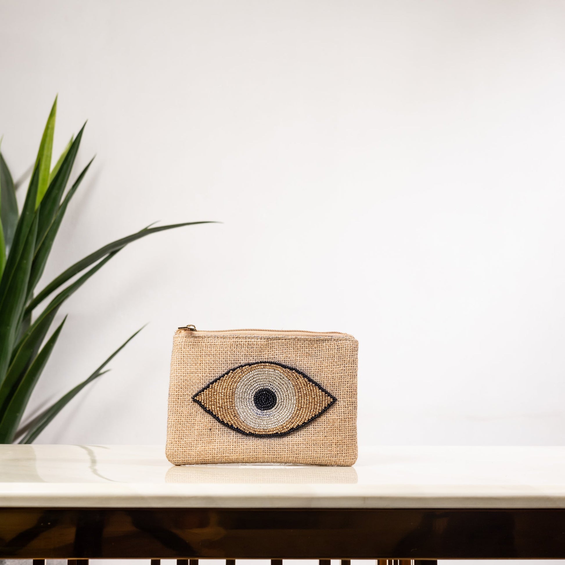 BEIGE EYE FLAT BAG POUCH