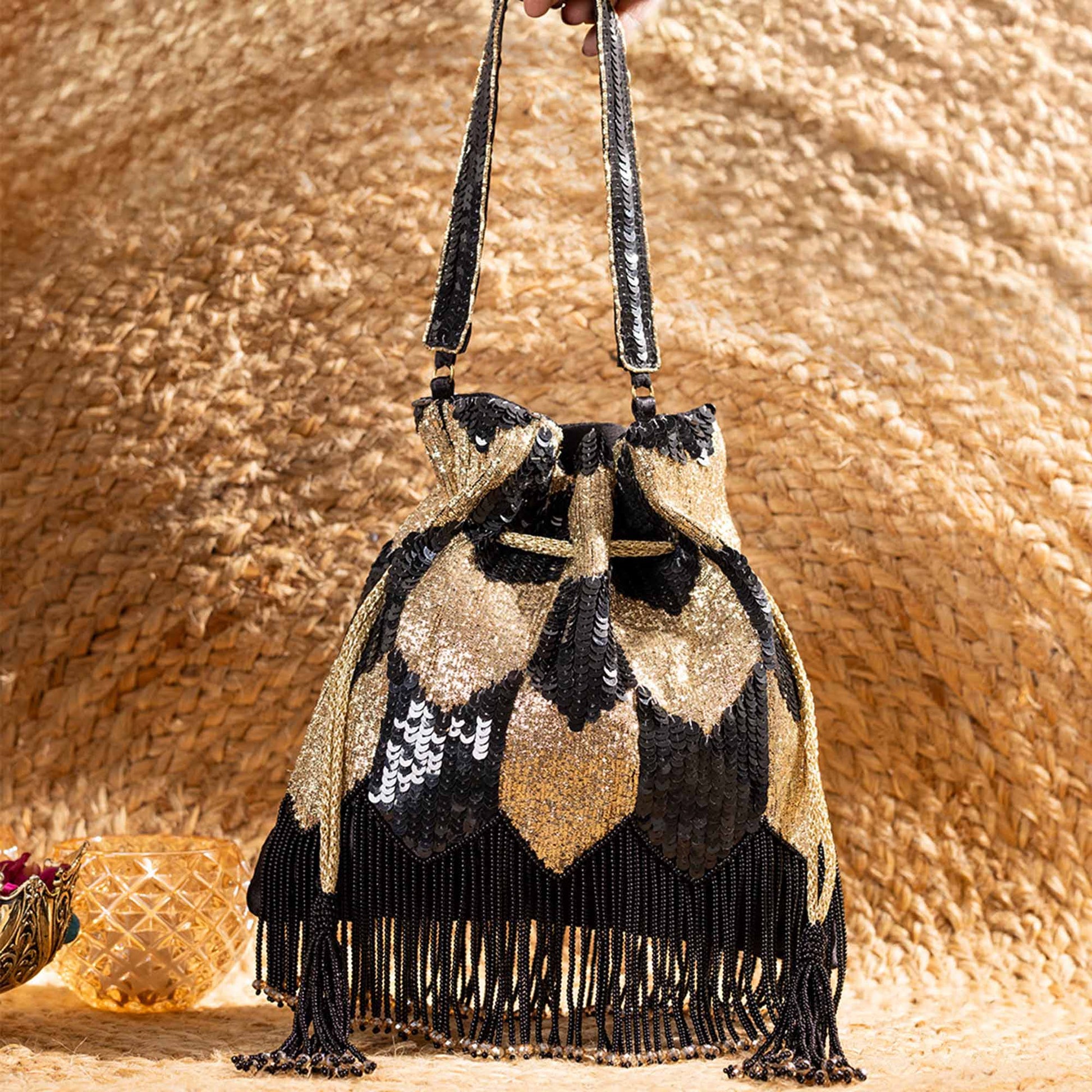 Redefine festive elegance with SAANISH potlis, crafted for the woman who loves to blend tradition with contemporary flair. Our designs showcase intricate craftsmanship, luxe textures, and signature embellishments that instantly elevate your look. Lightweight yet spacious, these potlis balance functionality with glamour, making them your perfect companion for weddings, soirées, and everything in between.