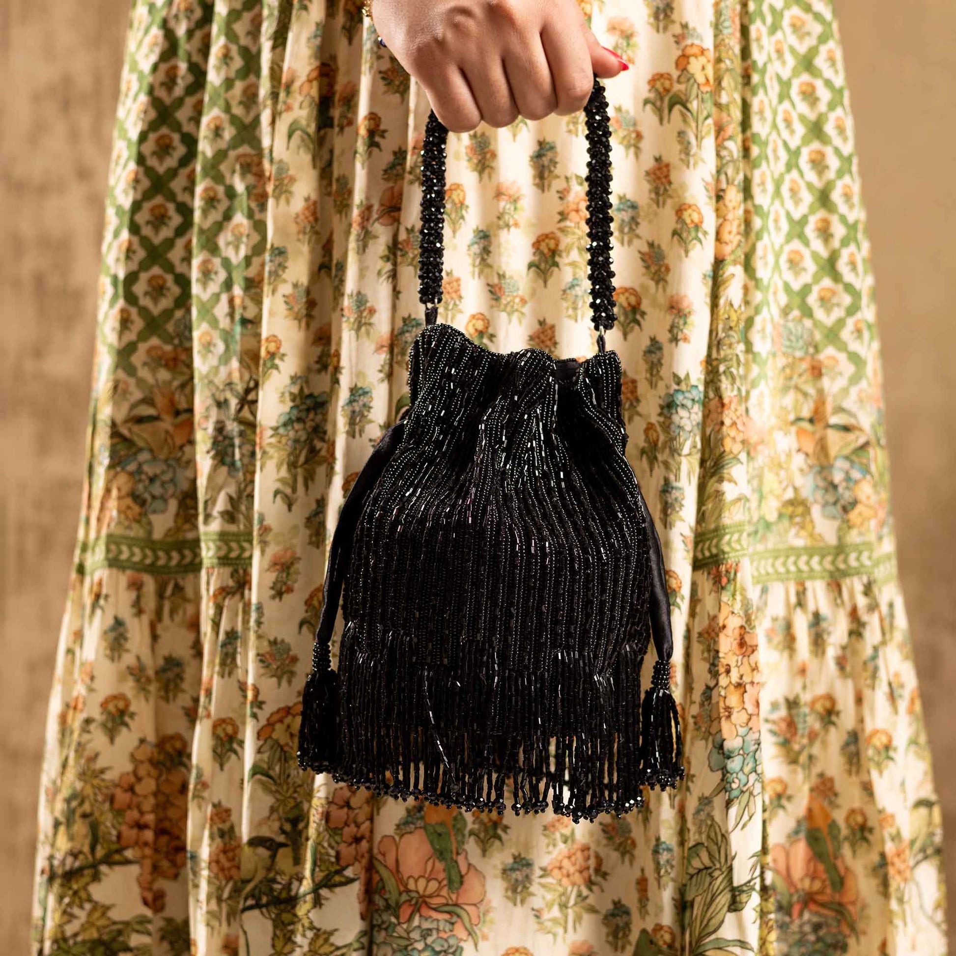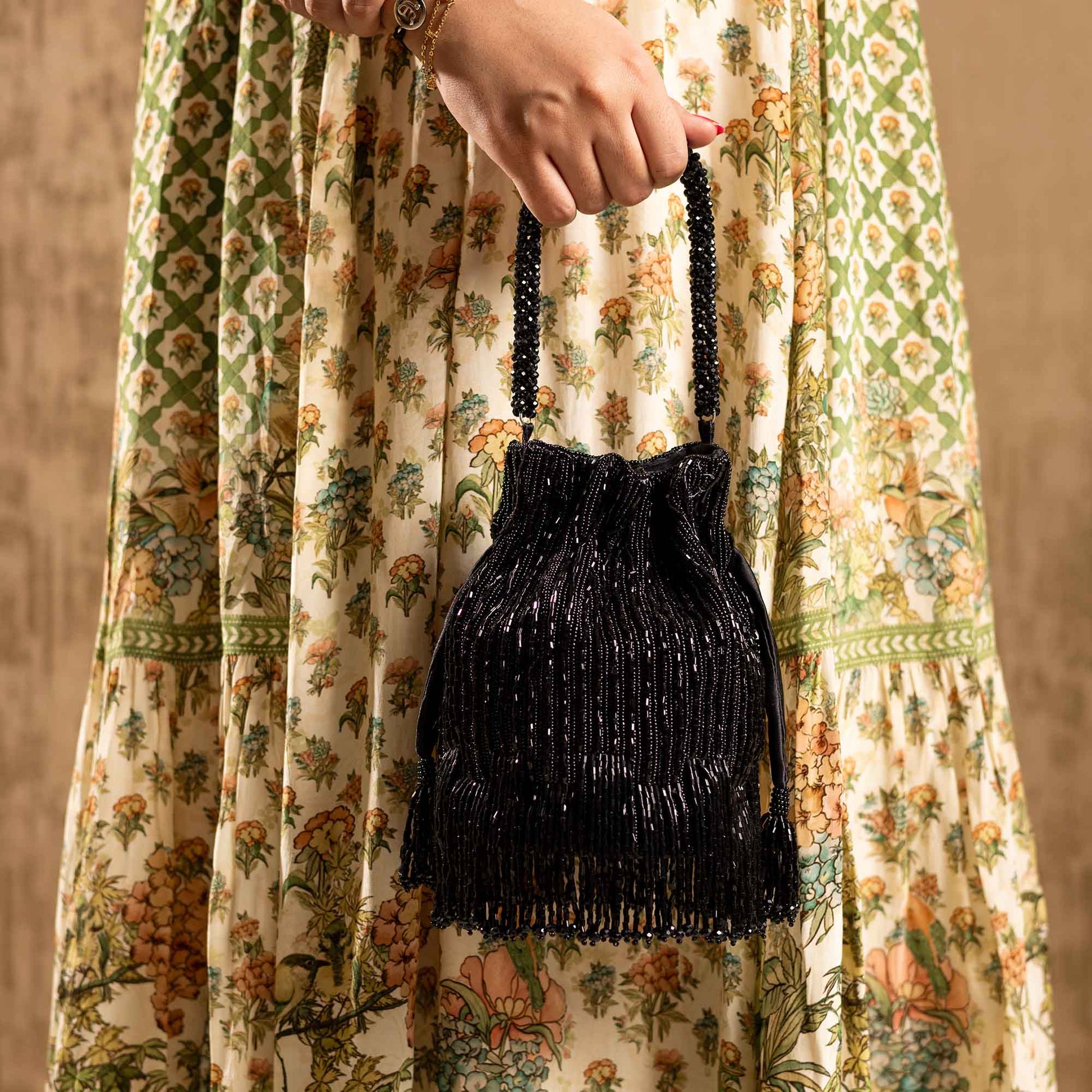 Elevate your festive style with SAANISH bucket potlis — where modern design meets timeless tradition. With their structured silhouette, roomy interiors, and hand-embellished detailing, these potlis strike the perfect balance between statement and sophistication. A must-have for weddings, soirées, and celebrations, they let you carry your essentials with grace and glamour.