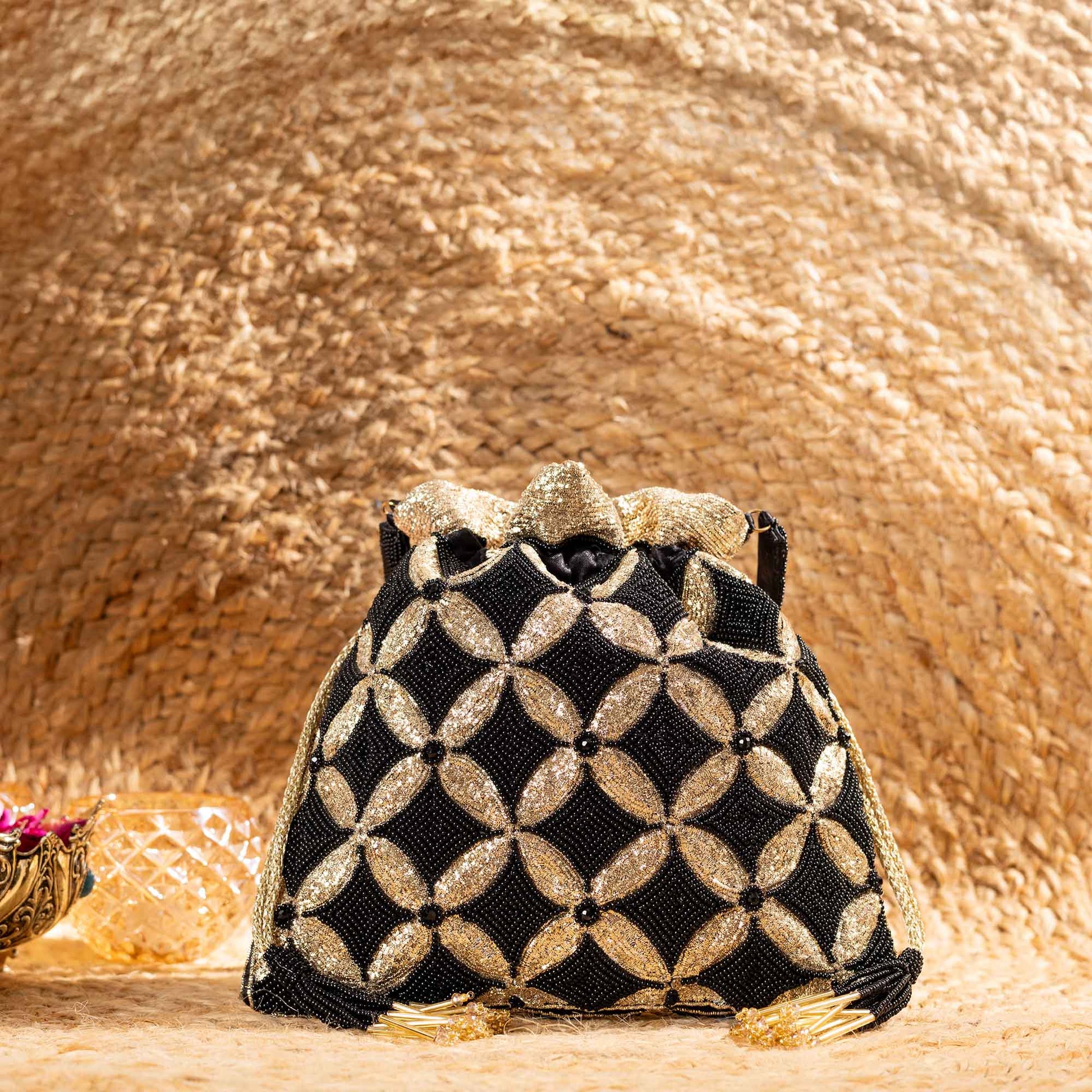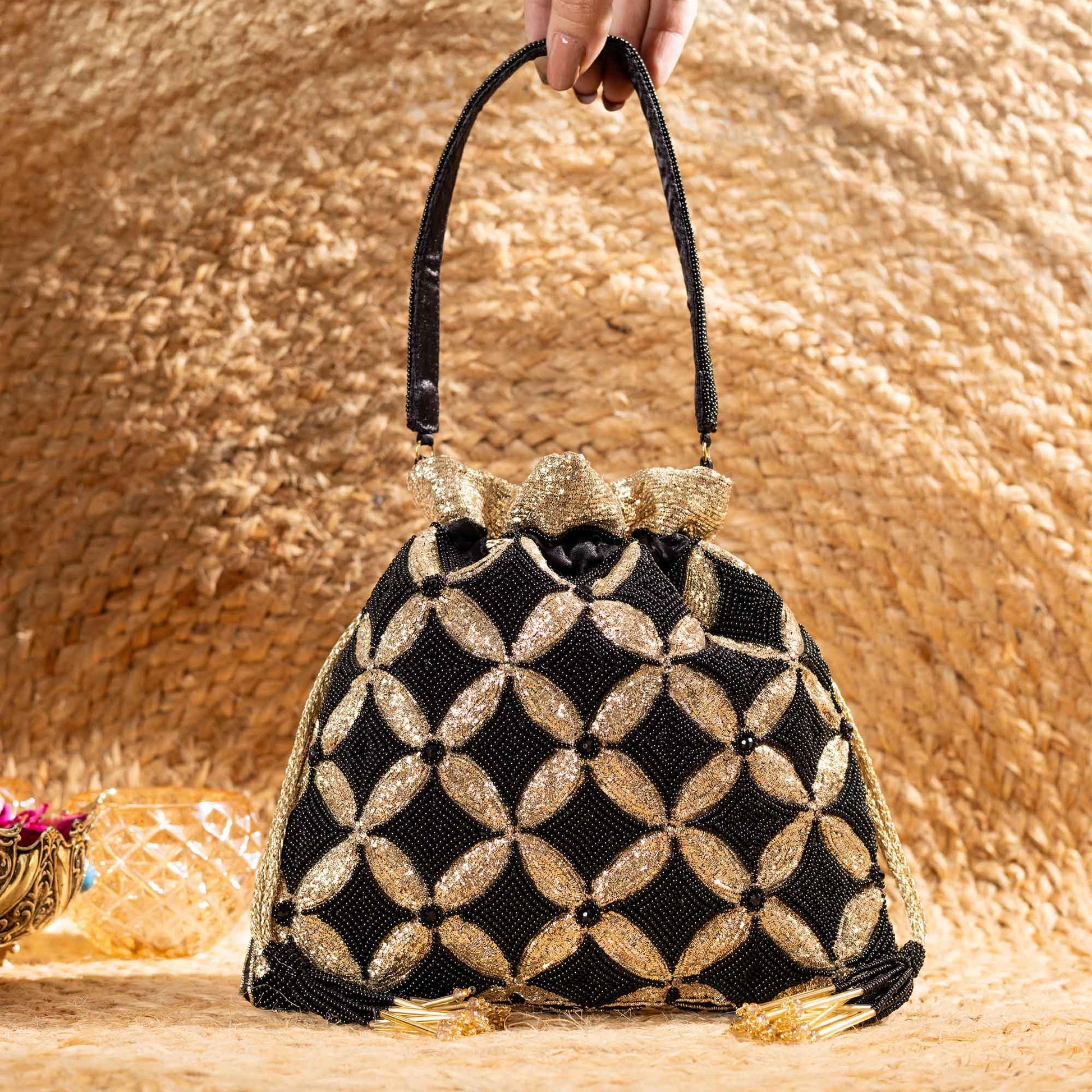 Redefine festive elegance with SAANISH potlis, crafted for the woman who loves to blend tradition with contemporary flair. Our designs showcase intricate craftsmanship, luxe textures, and signature embellishments that instantly elevate your look. Lightweight yet spacious, these potlis balance functionality with glamour, making them your perfect companion for weddings, soirées, and everything in between.