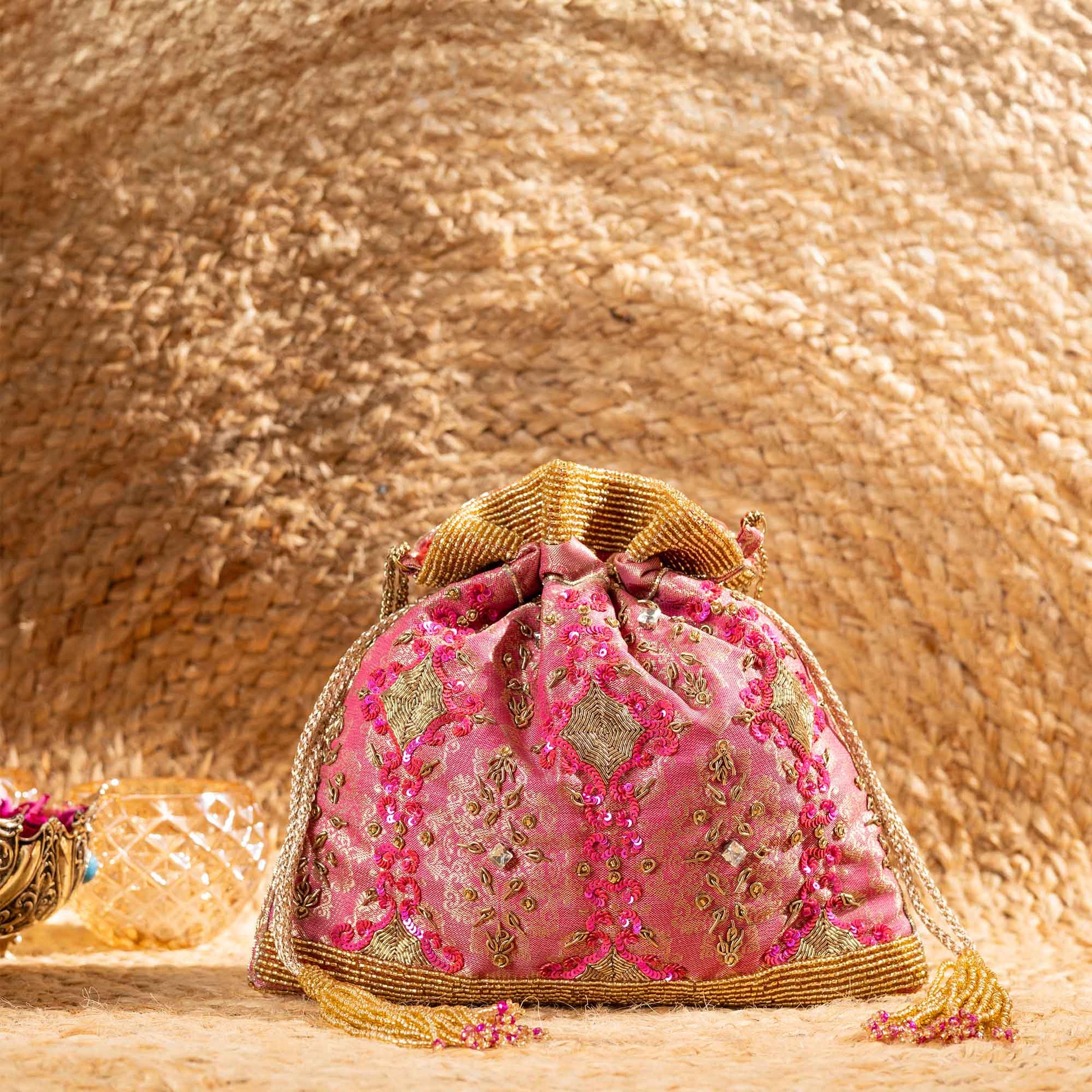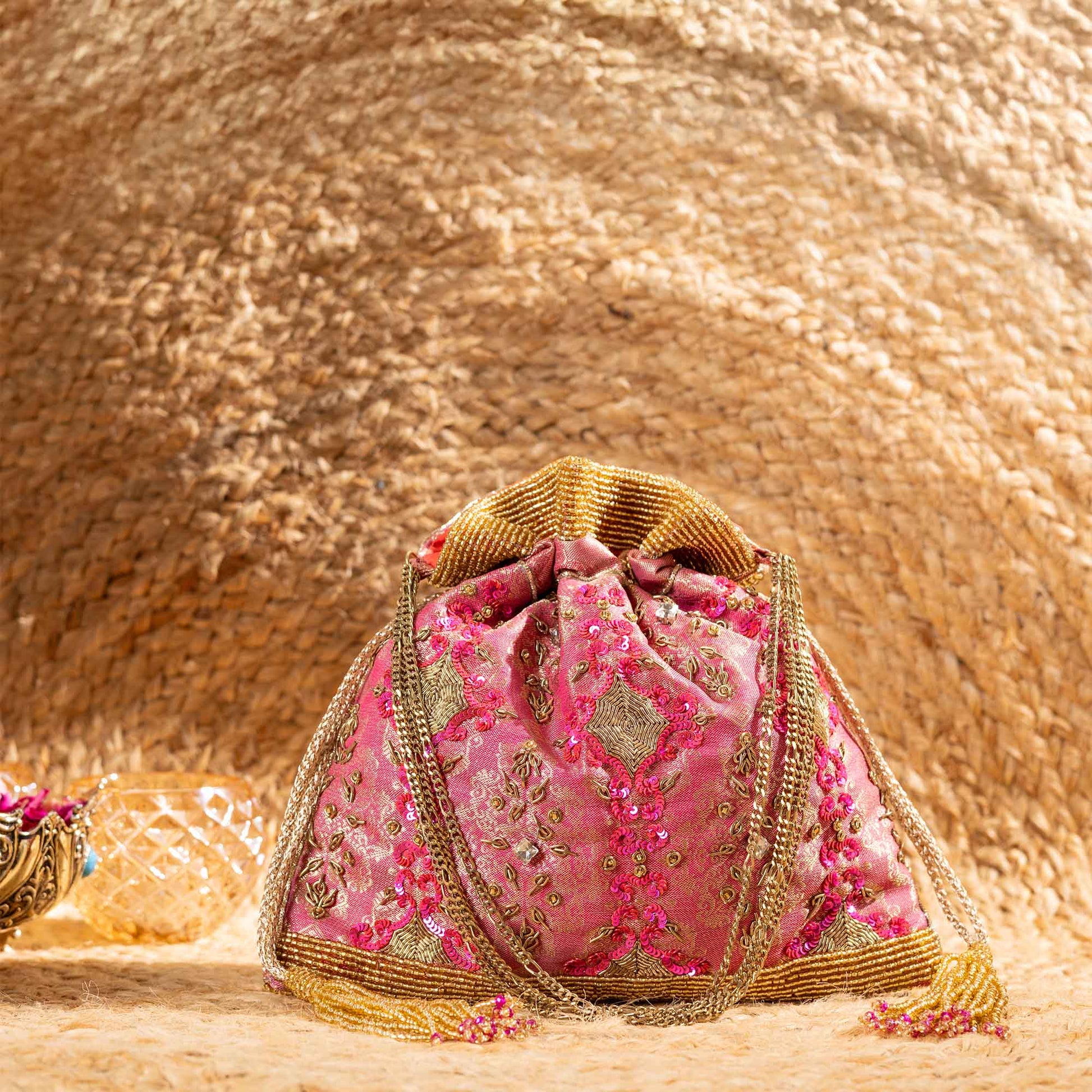 Redefine festive elegance with SAANISH potlis, crafted for the woman who loves to blend tradition with contemporary flair. Our designs showcase intricate craftsmanship, luxe textures, and signature embellishments that instantly elevate your look. Lightweight yet spacious, these potlis balance functionality with glamour, making them your perfect companion for weddings, soirées, and everything in between.