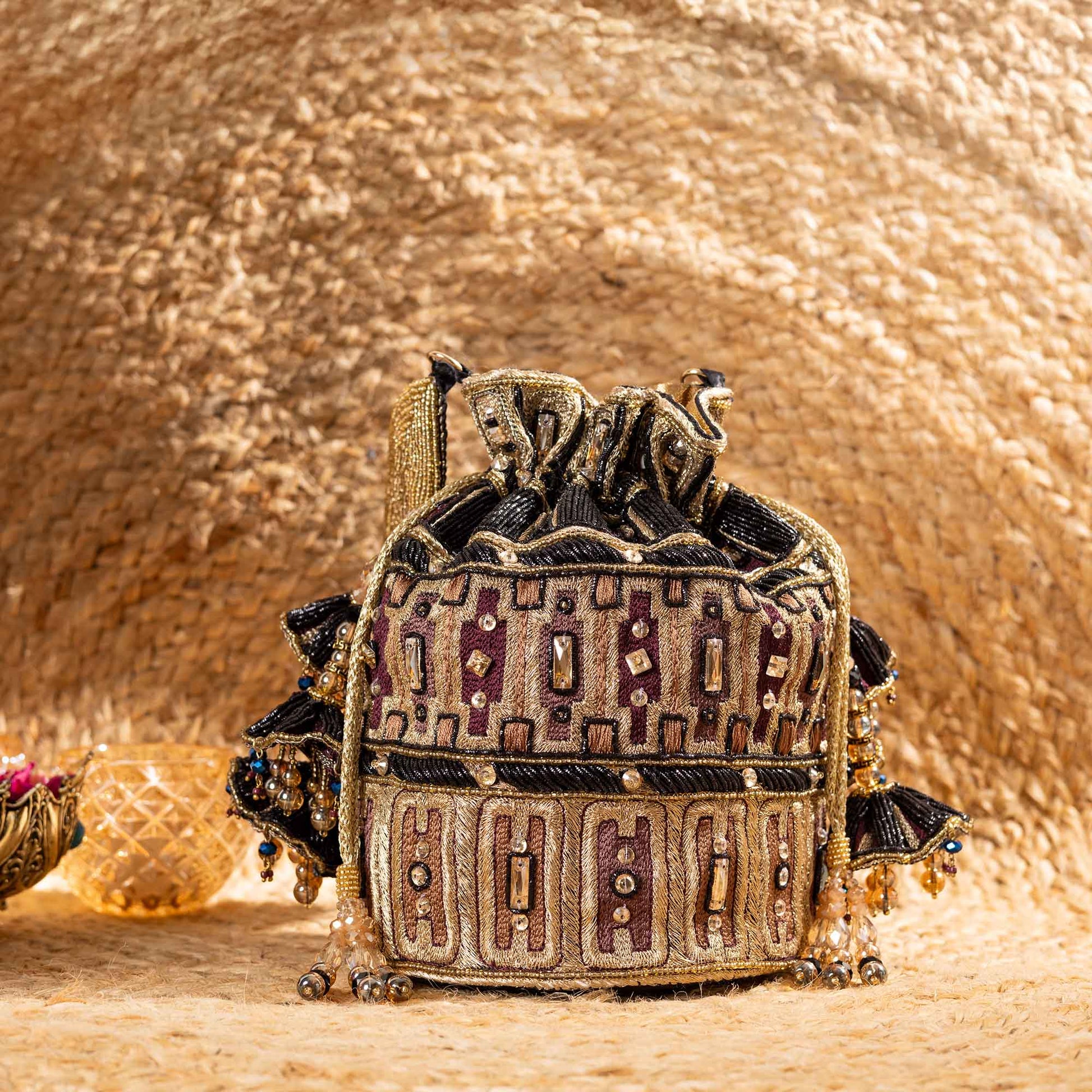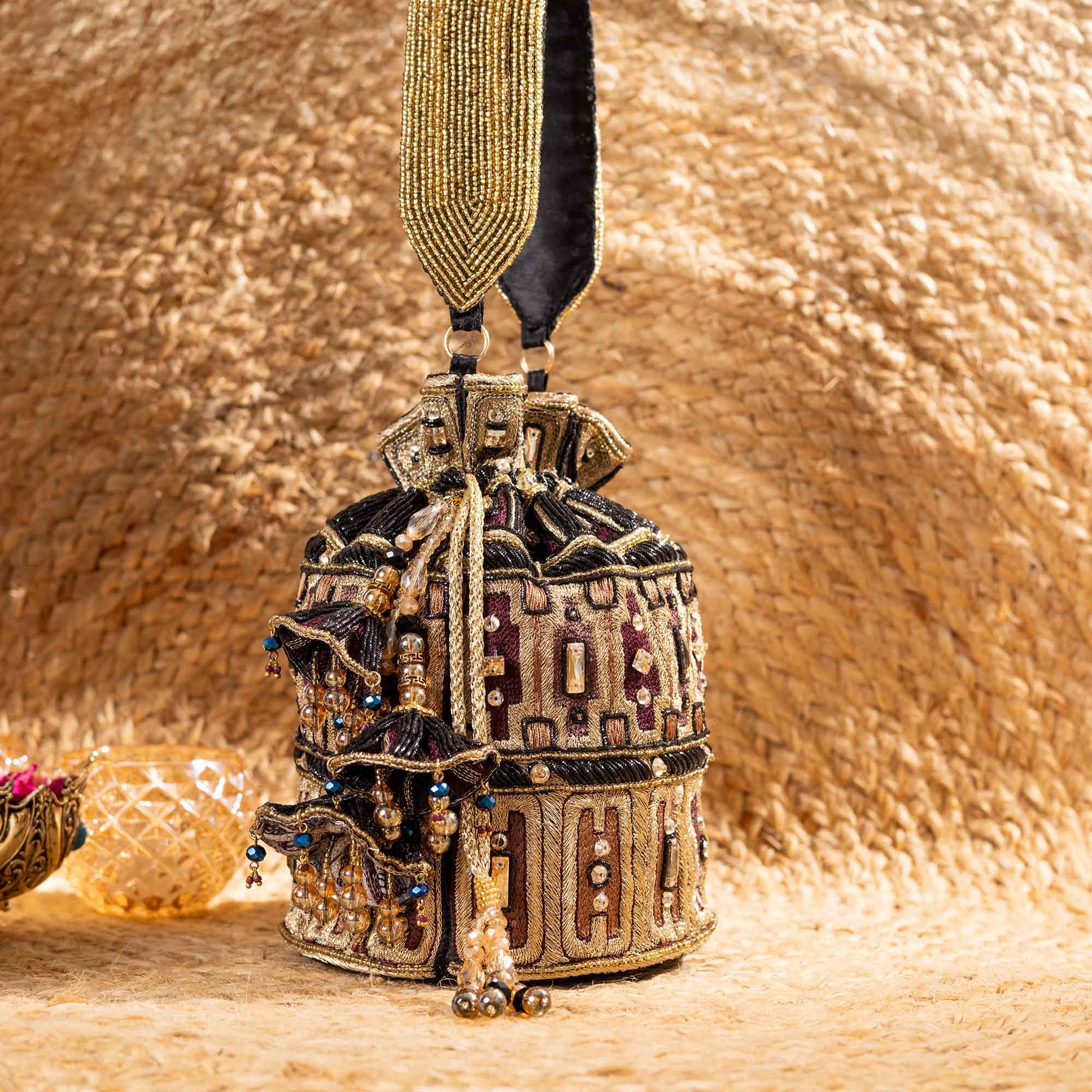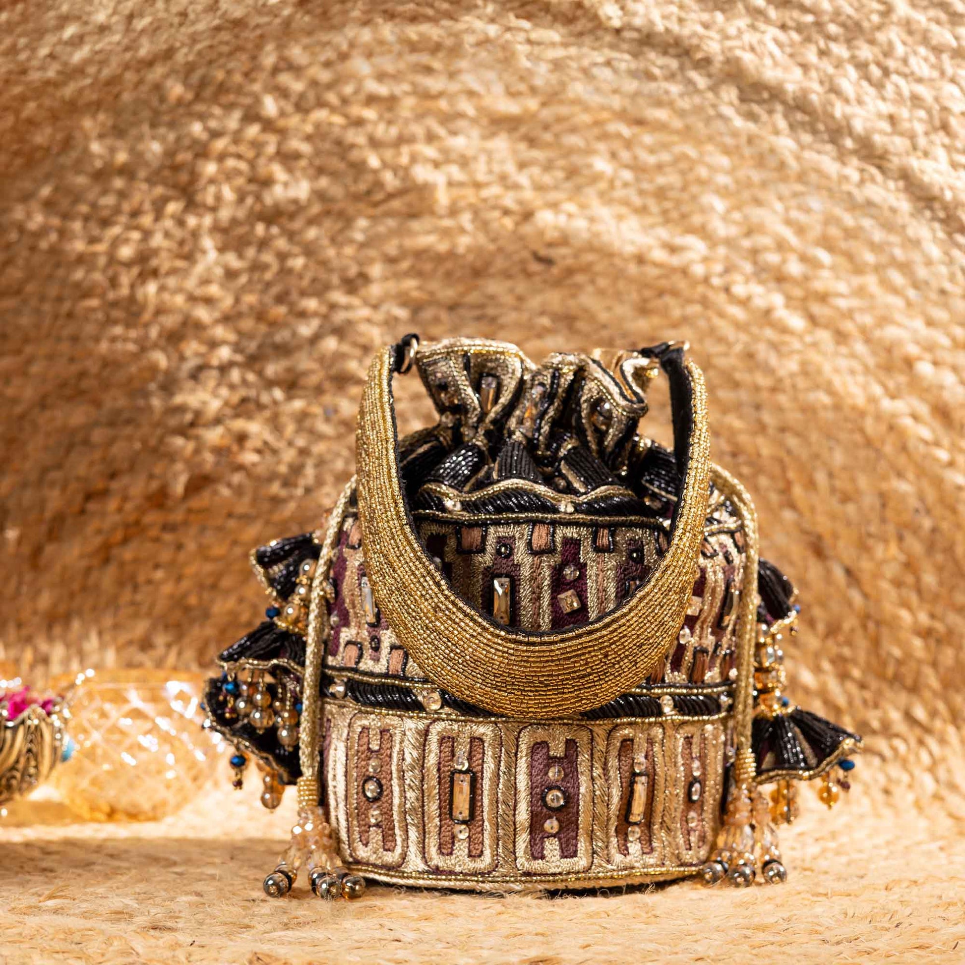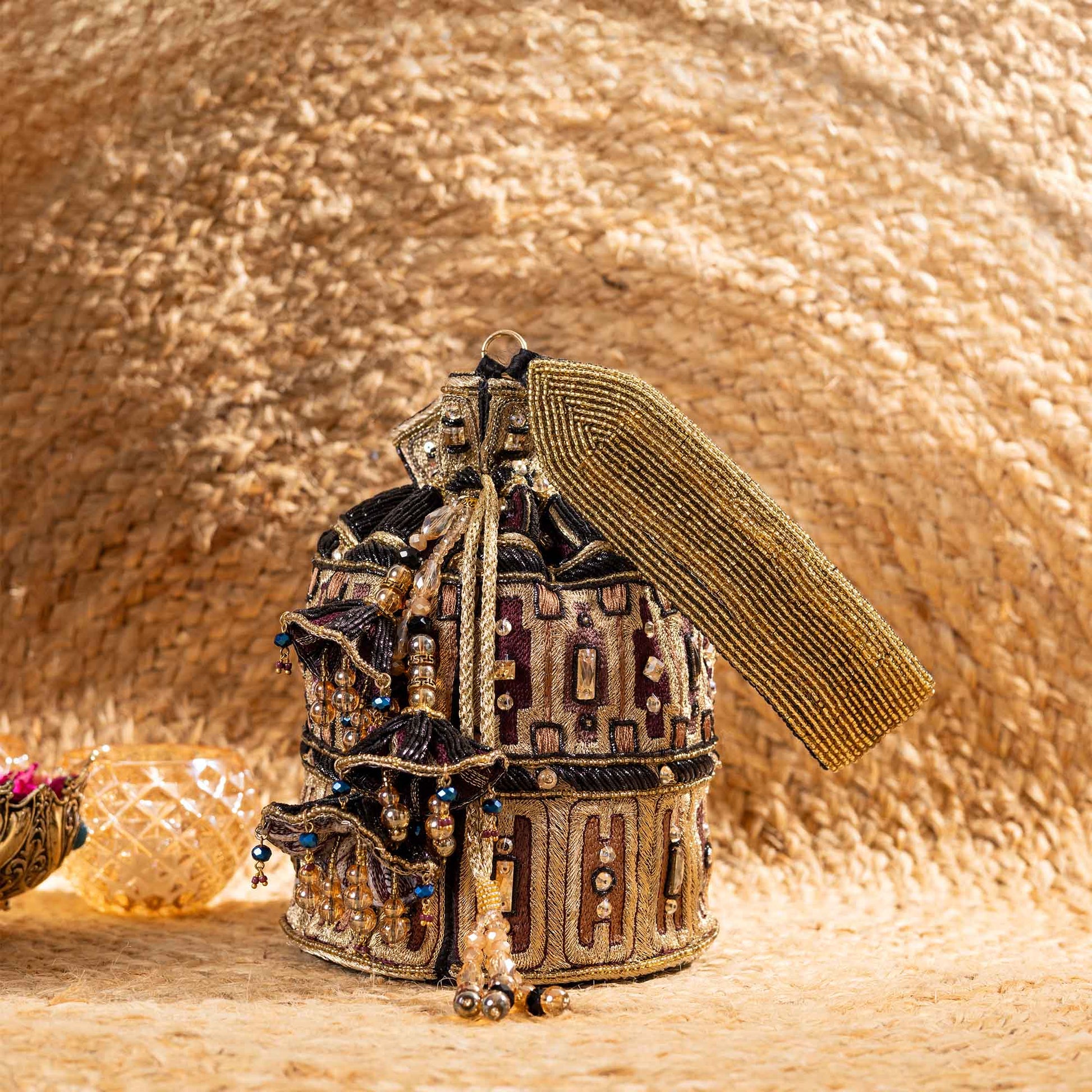 Elevate your festive style with SAANISH bucket potlis — where modern design meets timeless tradition. With their structured silhouette, roomy interiors, and hand-embellished detailing, these potlis strike the perfect balance between statement and sophistication. A must-have for weddings, soirées, and celebrations, they let you carry your essentials with grace and glamour.