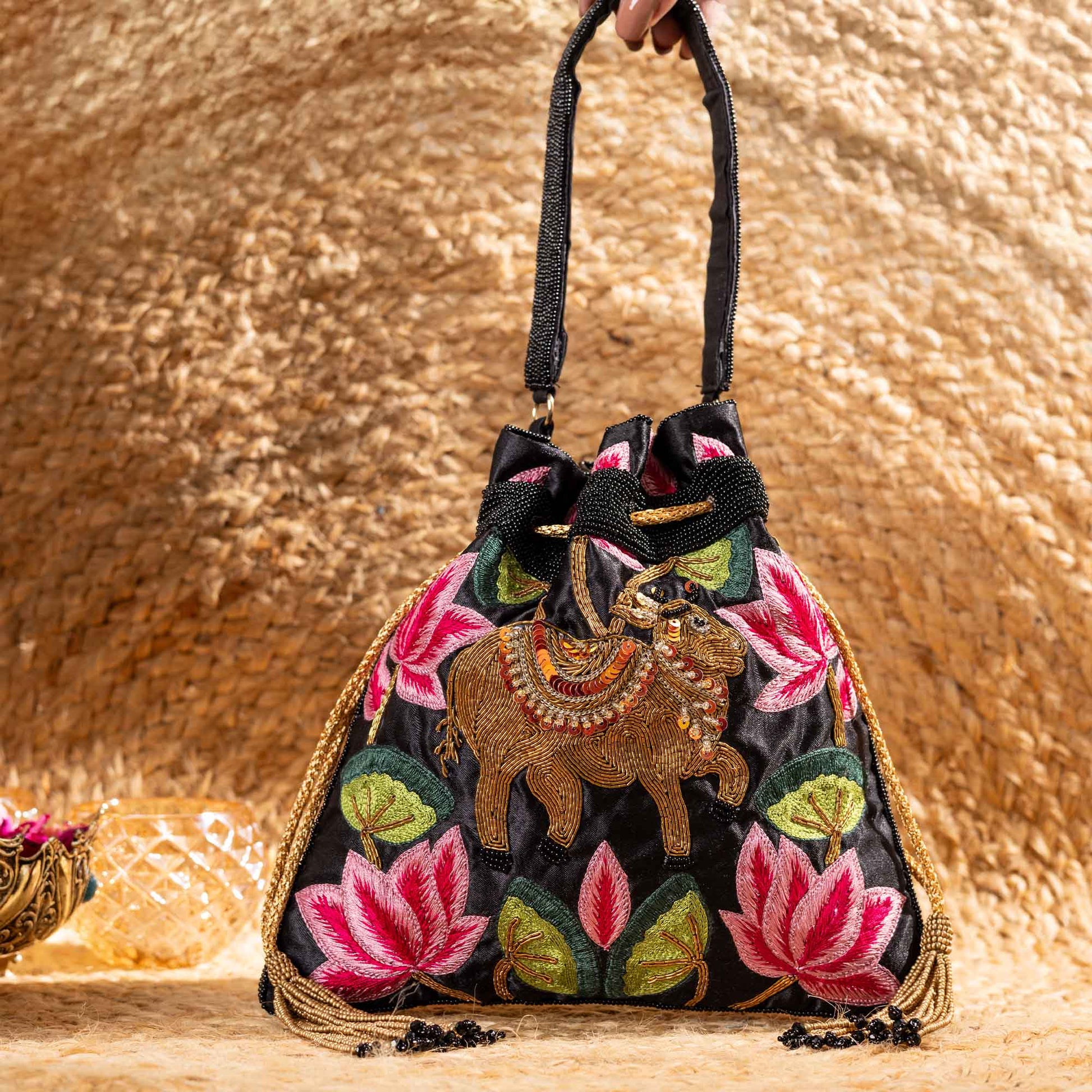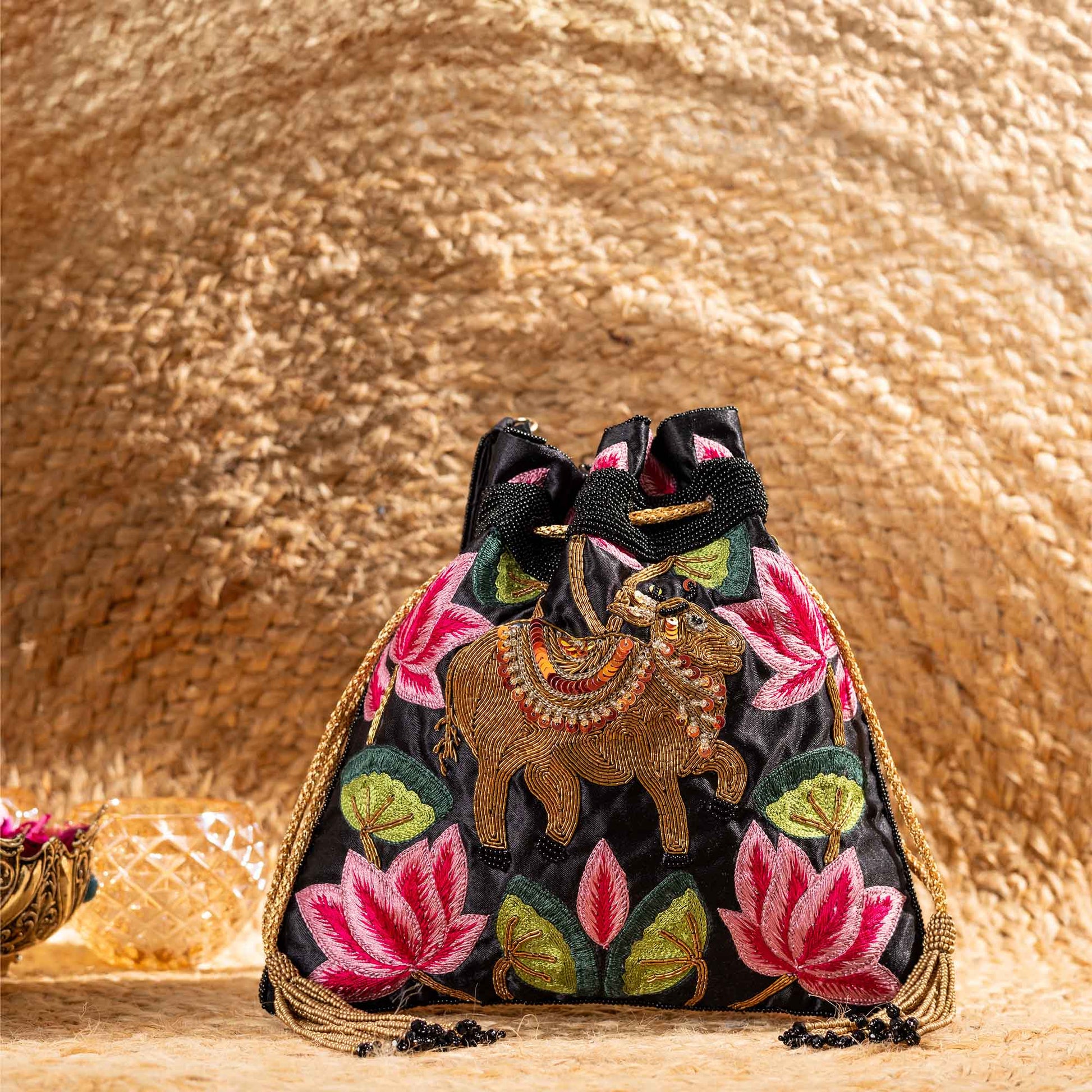 Redefine festive elegance with SAANISH potlis, crafted for the woman who loves to blend tradition with contemporary flair. Our designs showcase intricate craftsmanship, luxe textures, and signature embellishments that instantly elevate your look. Lightweight yet spacious, these potlis balance functionality with glamour, making them your perfect companion for weddings, soirées, and everything in between.