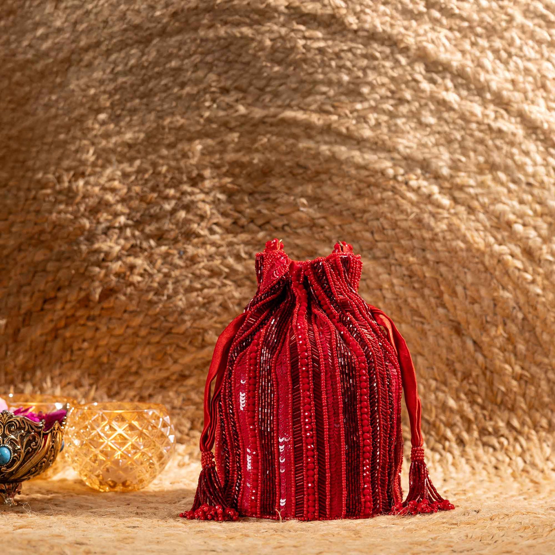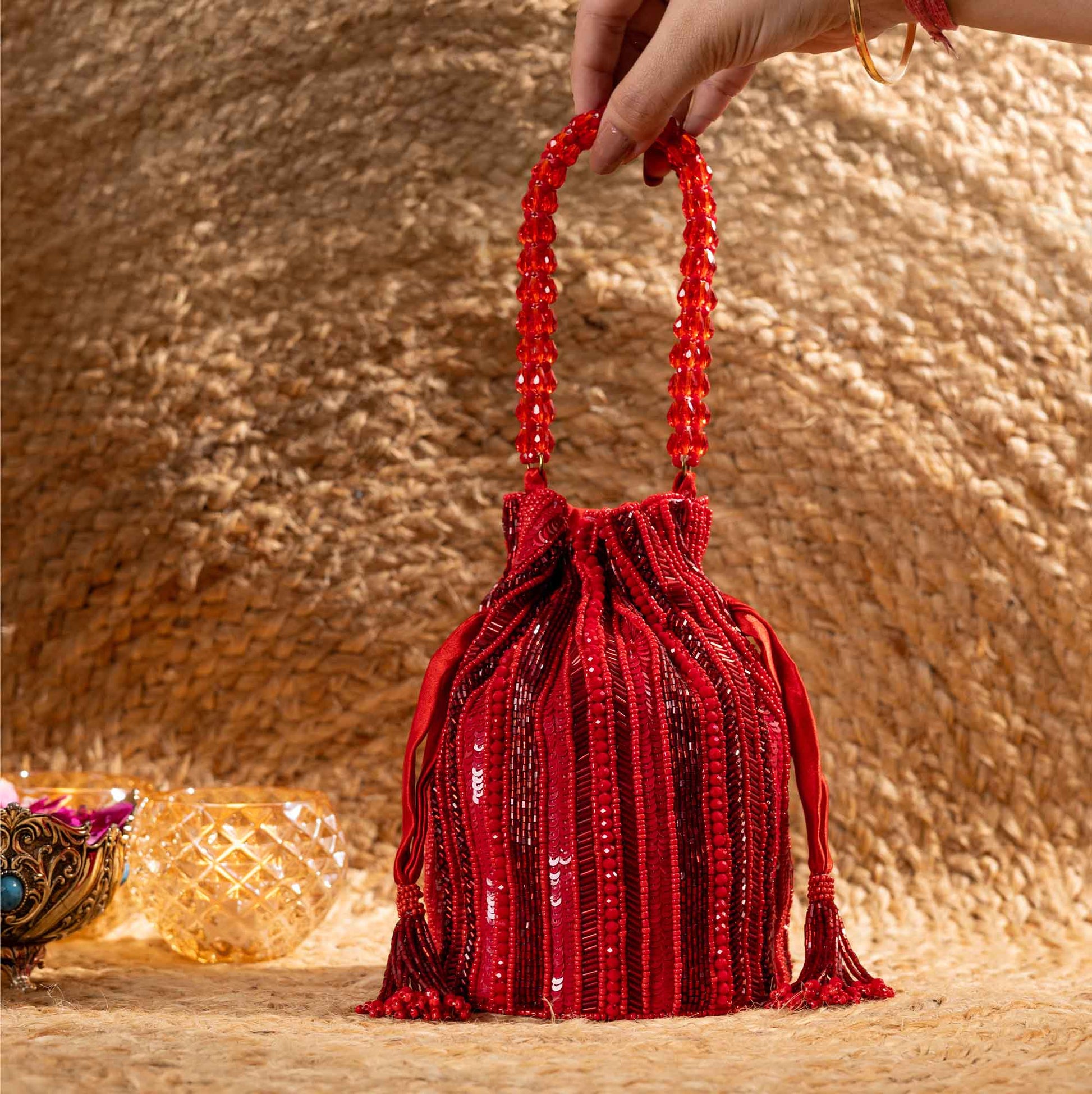 Elevate your festive style with SAANISH bucket potlis — where modern design meets timeless tradition. With their structured silhouette, roomy interiors, and hand-embellished detailing, these potlis strike the perfect balance between statement and sophistication. A must-have for weddings, soirées, and celebrations, they let you carry your essentials with grace and glamour.