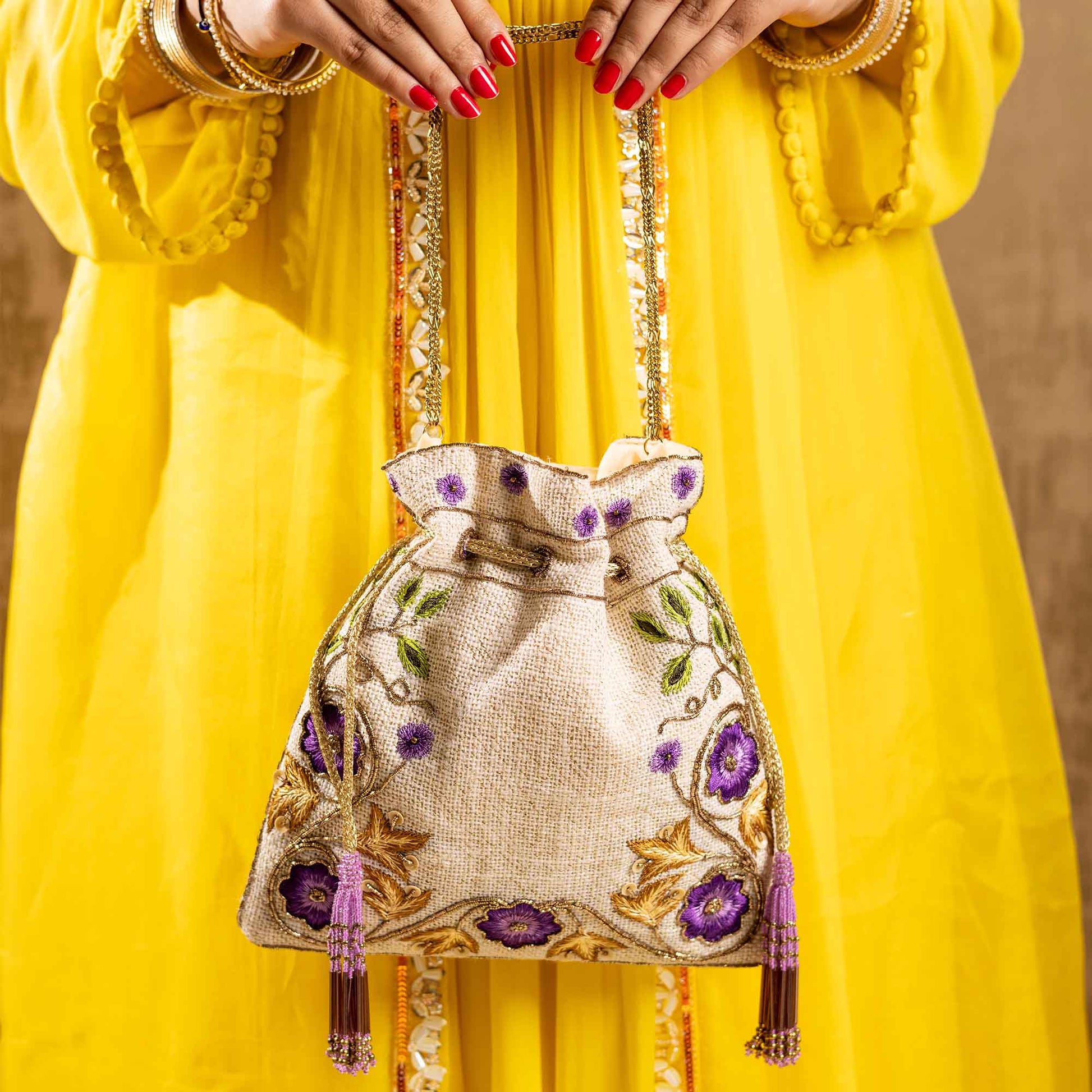 Redefine festive elegance with SAANISH potlis, crafted for the woman who loves to blend tradition with contemporary flair. Our designs showcase intricate craftsmanship, luxe textures, and signature embellishments that instantly elevate your look. Lightweight yet spacious, these potlis balance functionality with glamour, making them your perfect companion for weddings, soirées, and everything in between.