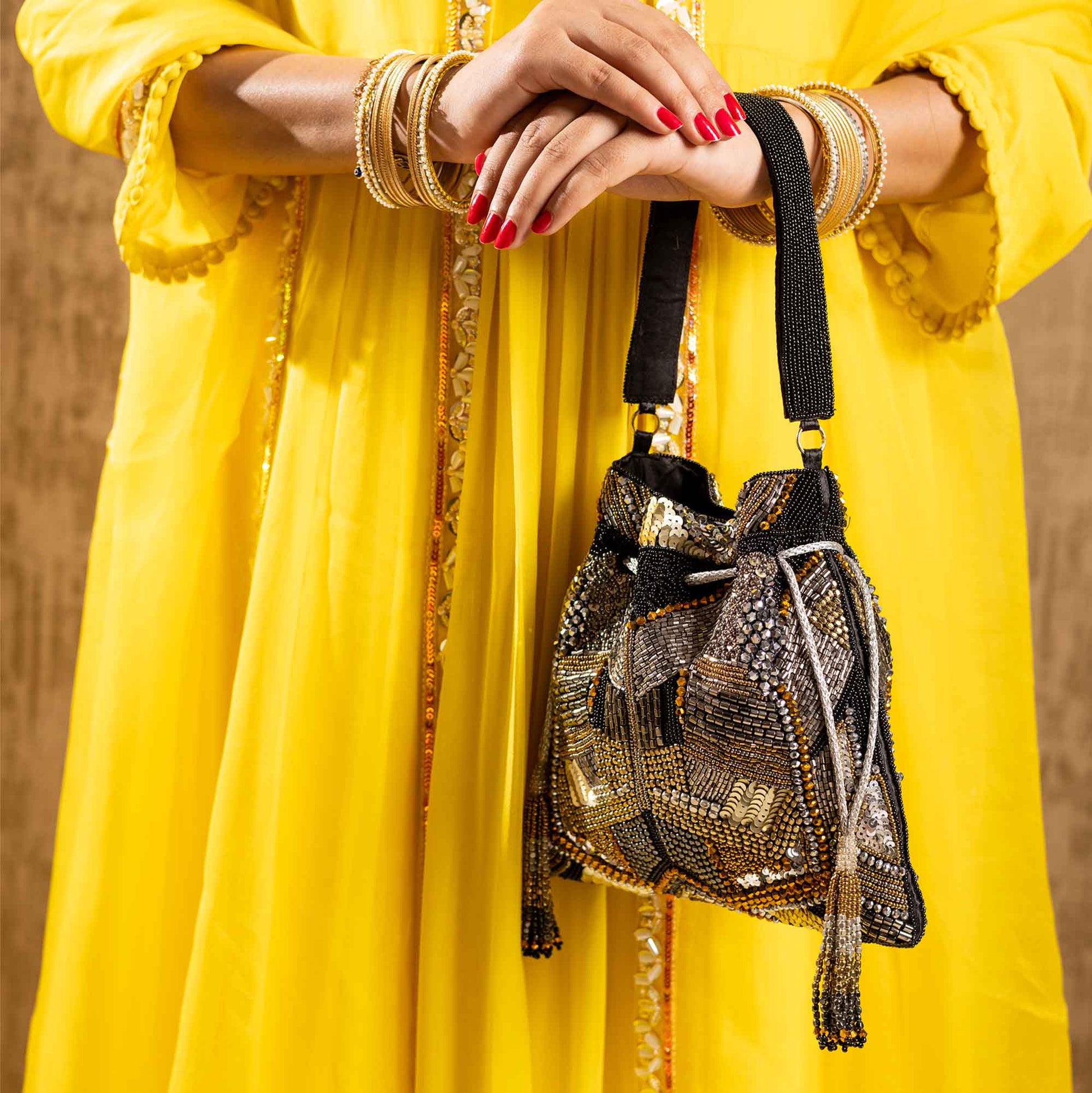 Redefine festive elegance with SAANISH potlis, crafted for the woman who loves to blend tradition with contemporary flair. Our designs showcase intricate craftsmanship, luxe textures, and signature embellishments that instantly elevate your look. Lightweight yet spacious, these potlis balance functionality with glamour, making them your perfect companion for weddings, soirées, and everything in between.
