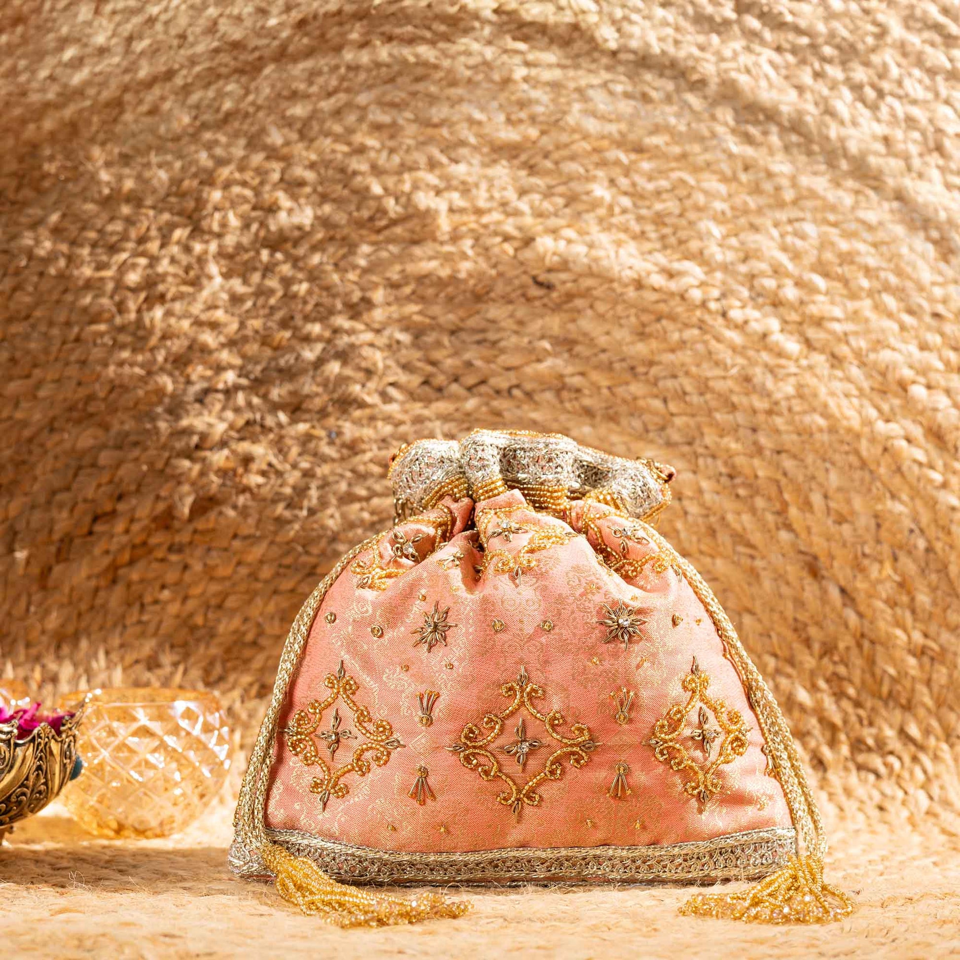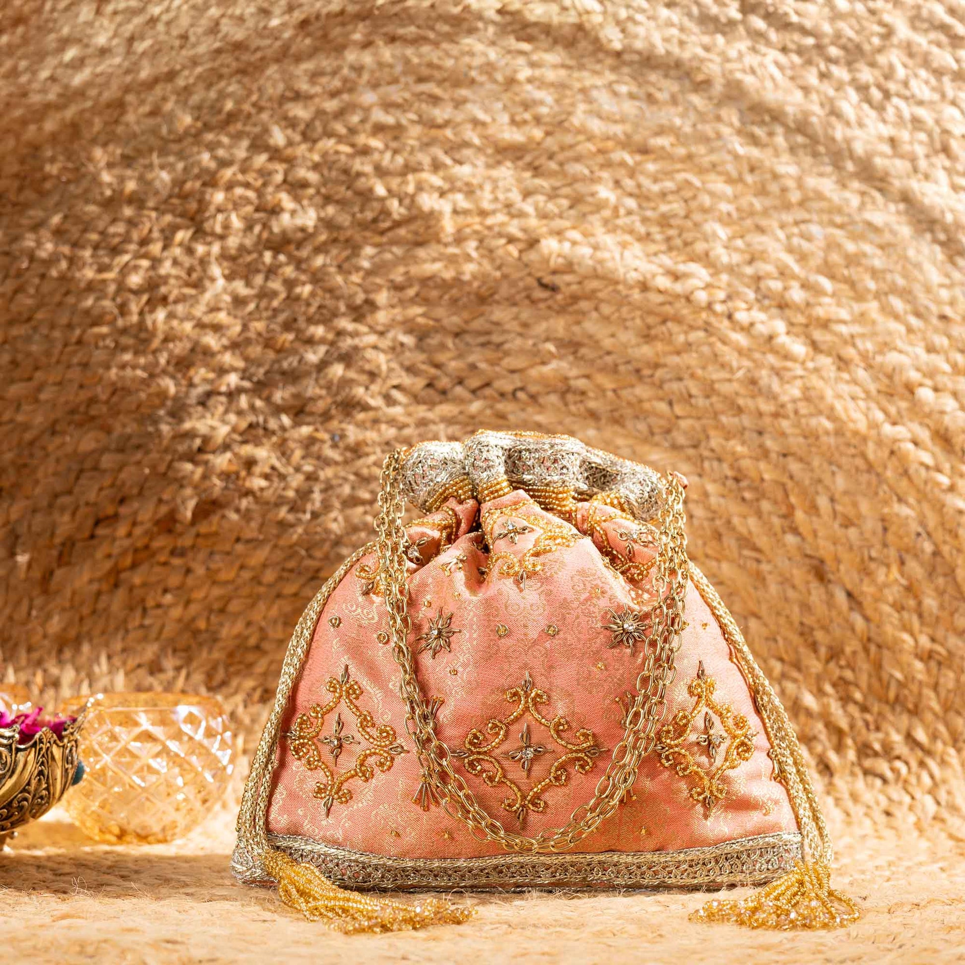 Redefine festive elegance with SAANISH potlis, crafted for the woman who loves to blend tradition with contemporary flair. Our designs showcase intricate craftsmanship, luxe textures, and signature embellishments that instantly elevate your look. Lightweight yet spacious, these potlis balance functionality with glamour, making them your perfect companion for weddings, soirées, and everything in between.